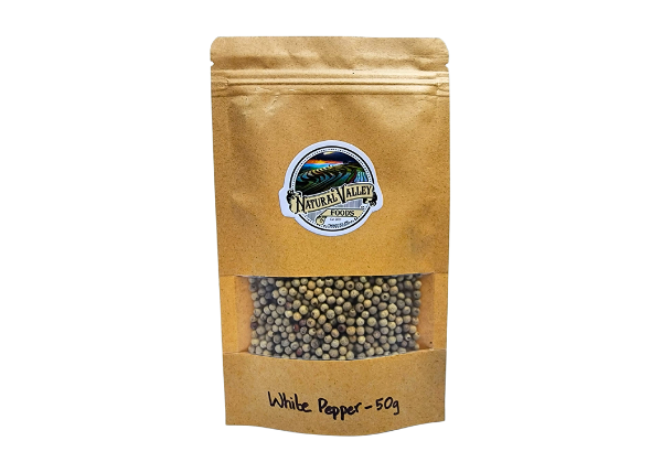 Origin: Kerala. White pepper is a very high-quality premium product. It is milder than black pepper yet is spicy, tasty with an attractive color. It is especially used in white sauces and in dishes that require less spice.